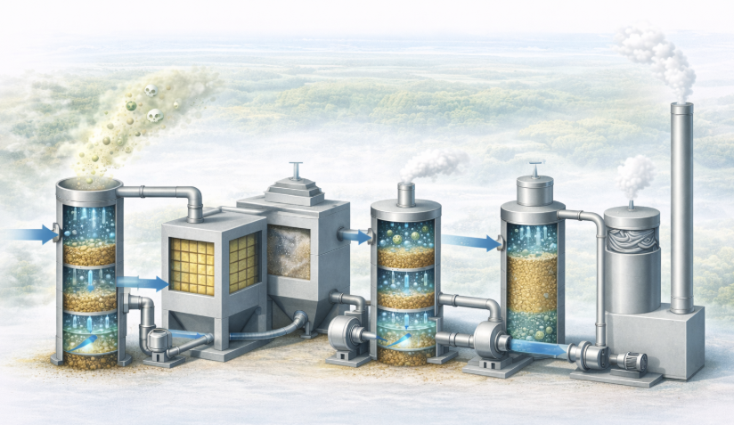 생물학적 대기오염 처리 기술은 친환경적이고 경제적인 공법으로 평가받고 있지만, 단일 공정만으로 모든 오염 조건을 안정적으로 처리하기에는 한계가 있습니다. 특히 산업 현장에서는 오염물질 농도가 시간대에 따라 크게 변동하거나, 여러 종류의 가스가 동시에 배출되는 경우가 많습니다. 이러한 상황에서는 하나의 생물학적 반응기만으로는 충분한 체류 시간 확보나 안정적 미생물 활성 유지가 어려울 수 있습니다. 따라서 복합 생물학적 대기 방지시설은 각 공정의 장점을 결합하여 전체 시스템의 신뢰성을 향상시키는 전략입니다. 예를 들어 전처리 흡수 공정을 통해 수용성 가스를 제거한 후 바이오필터를 적용하거나, 바이오스크러버와 바이오트리클링 필터를 병렬로 배치하여 부하 변동에 대응하는 방식이 활용됩니다. 이러한 복합 설계는 생물학적 공법의 적용 범위를 확장하는 중요한 접근입니다.