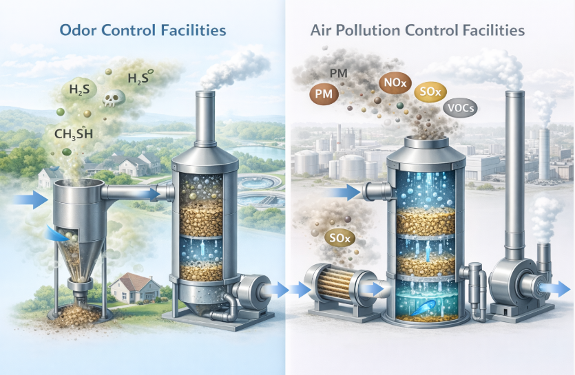 악취 방지시설과 대기 방지시설은 모두 대기 환경을 개선하기 위한 설비이지만, 목적과 규제 대상, 설계 기준, 처리 방식에서 명확한 차이를 가집니다. 대기 방지시설은 주로 먼지, 황산화물, 질소산화물, 휘발성유기화합물 등 법적 배출허용기준이 설정된 오염물질을 저감하는 데 초점을 둡니다. 반면 악취 방지시설은 인간이 감지하는 불쾌한 냄새 성분을 제거하는 것을 목표로 하며, 농도보다는 체감 강도와 복합 냄새 특성이 중요한 평가 요소가 됩니다. 본 글에서는 두 시설의 개념적 차이부터 시작하여, 처리 대상 물질의 특성, 설계 구조, 적용 공법, 규제 체계, 운영 전략까지 체계적으로 비교 분석합니다. 이를 통해 산업 현장에서 어떤 기준으로 설비를 선택해야 하는지, 그리고 복합 적용이 필요한 경우 어떤 접근이 필요한지를 종합적으로 이해할 수 있도록 설명합니다.